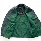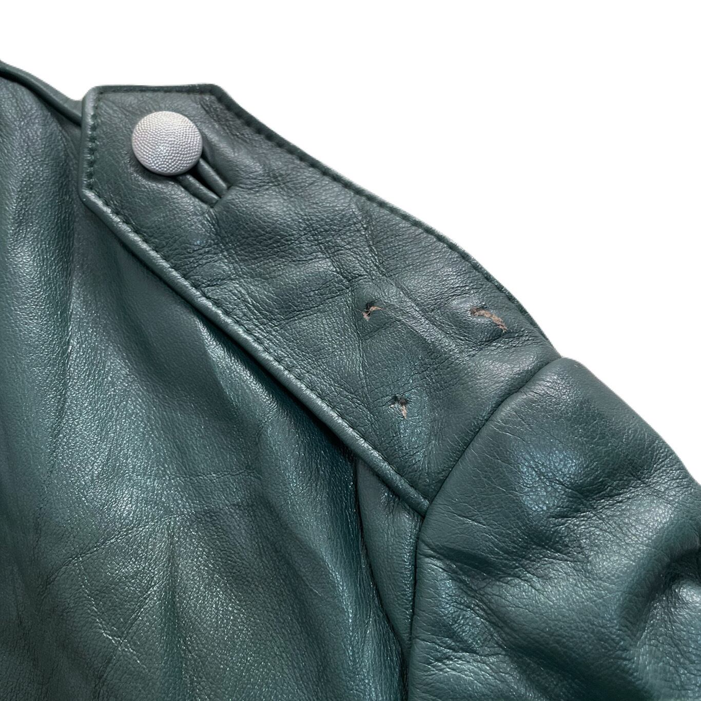 60s ドイツ軍 実物 肩章付 レザー コート グリーン ミリタリー ライダース ヴィンテージ カーコート フランス軍 ナチス 旧車 単車
