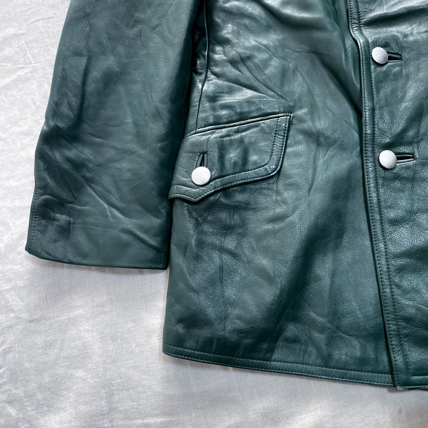 ドイツ軍特有のシルバーボタン、ボディー質感からしなやかさのあるシープスキンになります。