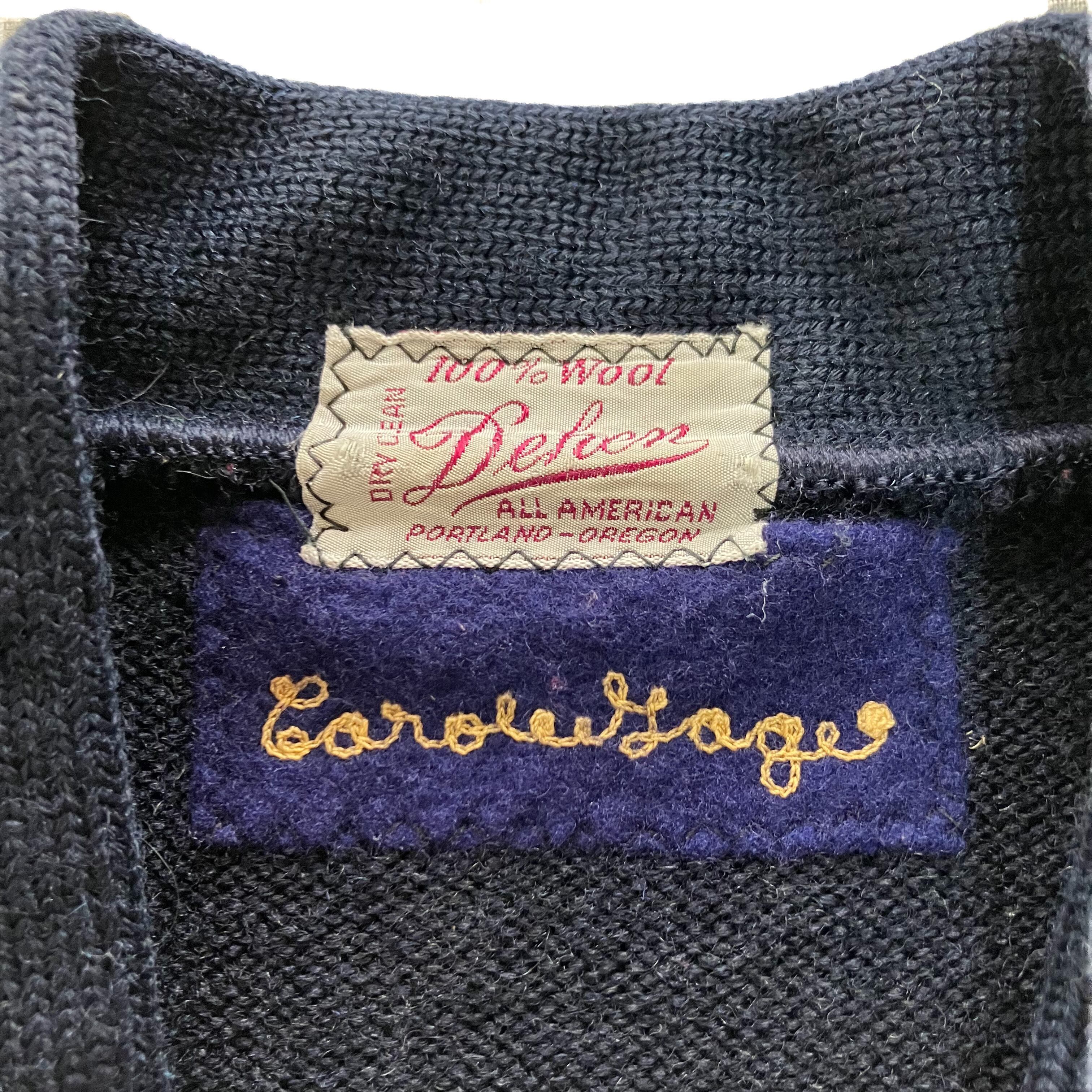 70s レタード カーディガン 長袖 ニット カーディガン M相当 ネイビー系 メンズ レディース ヴィンテージ